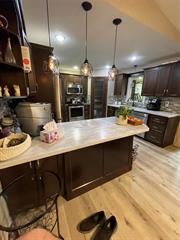 This bungalow sits on a well maintained sheltered yard with mature trees. The main floor has 1692 sq ft of living space with an additional 1692 sq ft of developed basement. There are 5 bedrooms, 3 bathrooms, newer kitchen(2015), re-shingled roof in 2019, replaced deck in 2000, 18'-17' new pergola on concrete patio added in 2023, that includes that makes the home wheelchair accessible, air to air heat pump installed in 2023 that gives you cooling in summertime and heating in winter time(works to -25C). Master bedroom includes ensuite bathroom with jetted tub and walk thru closet. Also included is a brand new 45 gallon hot water tank(Rheem Marathon). Double attached garage is accessible via main floor and basement. Outbuildings include 5000 sq.ft. machine shop with metal roof and a 6000 sq. ft. poultry barn used for storage. Also 4 grain bins, can be rented out. There is a century old small log cabin that was used as a sauna( needs sauna stove and repairs on the log cabin) This property is definitely a must see to be appreciatedProperty Summary