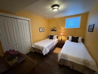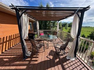 Welcome to this stunning modern bungalow on the edge of a quiet community, on a half-acre lot. Built in 2012, this 1,342 SF home with a fully finished basement features 4 bedrooms (2 up, 2 down), 3 full 4-piece bathrooms (main & ensuite with granite counters & basement bath with 2-person cedar sauna) and an oversized double attached insulated garage. The meticulously landscaped backyard offers cement walkways, patio area with fire pit, and matching 12x16 garden shed with covered porch & ramp, surrounded by a variety of trees, bushes, & flowers. Ample room for RV or boat parking on the large gravel driveway. Inside, the main floor boasts a back mud room with built-in shoe closet and laundry room with sink, open-concept kitchen/dining area with large island finished in Brazilian stone, tile backsplash, under/over counter lighting, walk-in pantry, dimmers, & stainless steel appliances. Step through the patio doors to a wood deck with pergola or entertain in the inviting front parlour. The primary bedroom features a walk-in closet, ensuite with oversized tub, robe closet, and make-up vanity. Downstairs offers a spacious entertainment area with wet bar, office area, two large bedrooms, & generous storage.Property Summary