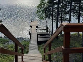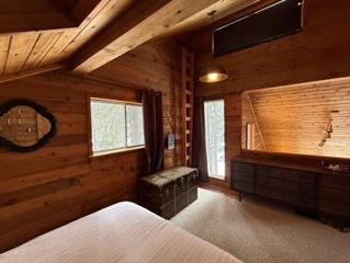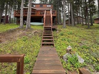 Nestle into this beautiful waterfront cabin and enjoy stunning views! Eat in kitchen with plenty of European cabinets and counter space. PVC window overlooking the yard, 2 fridges and portable dishwasher. Living room is open to the kitchen and is nice and bright with vaulted ceilings and an abundance of windows overlooking the lake/ deck. 3 bedrooms all situated on the top floor have wall to wall carpet and skylights add extra lighting. Nice 24 x 26 garage in concrete pad is insulated and wired. Large overhead door with screens. Yard is nicely landscaped on a private waterfront lot. Large deck built in 2022, fire pit area and deck gazebo included with fire table and furniture. Walkway to the water, dock and floating dock ( 10 X 12) with boat whips. This cabin has 2 x 6 construction, 2000 gallon septic tank. Water is pumped from the lake and is fully insulated and filtered for year round use. Definitely a must see!Property Summary