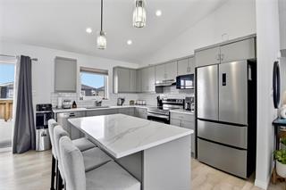 Stunning 5 bedroom, 3 full bathroom cab-over located in the highly sought-after Bellafield development, offering the perfect blend of modern design and functional family living. The bright, open-concept main level features soaring vaulted ceilings, luxury vinyl plank flooring, and a beautifully appointed kitchen complete with island, upgraded cabinetry, ceramic tile backsplash, and quartz countertops. The spacious primary suite is privately positioned above the garage and boasts a walk-in closet and full en-suite bathroom. The fully finished lower level provides a cozy rec room, two additional bedrooms, and another full bath — ideal for guests or growing families. Enjoy the convenience of direct access to the 22x22 double attached garage. A move-in ready home in a fantastic neighbourhood — don’t miss your opportunity! Offers, if any, to be presented February 25th at 7 pm.Property Summary