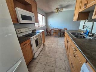 Stop paying rent! Affordable starter home! Galley style eat-in kitchen with quality oak cabinets and laminate counter tops. Double stainless steel sinks. Spacious dining area with large PVC window that overlooks the back yard. Living room is open and airy with laminate flooring with PVC picture window allows for plenty of natural light. 3 bedrooms. Primary bedroom is spacious with laminate flooring and large double closet. 4 piece bath with vanity, soaker tub, surround and vinyl flooring. Bonus room is great for extra storage or home office. Fenced yard. Large lot. Single detached garage with gravel floor is wired. Stucco exterior. PVC windows. Hot water tank replaced in 2021. Attic with R32 insulation. Furnace and shingles replaced in 2006. Low property taxes!Property Summary