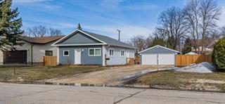 Renovated 3 bedroom home with an oversized detached double garage. The main floor features a modern open concept kitchen/living room/dining room, 3 good sized bedrooms and a full 4- piece bathroom. The basement has a recreation room, laundry, storage and utilities. Outside is a fenced yard and an oversized detached double garage that would be a mechanics dream! Concrete floor, 2 overhead doors with openers, fully insulated and heated. Updates include but are not limited to; 2018: High efficiency gas furnace, electric hot water tank, central air conditioning, PVC windows, main floor flooring, bathroom renovation and 100 amp electrical panel. 2019: kitchen renovation-new cabinets (soft close) counters and sink. 2022: siding on house. 2024: shingles, soffit, facia, eaves trough and downspouts. 2025: siding on garage. Home comes complete with fridge, stove, dishwasher, microwave, washer and dryer. Features; central air conditioning, back water valve, 100 amp panel, 2 storage sheds and a double wide driveway to the garage. Call your Agent today to set up your personal showing of this great property!Property Summary